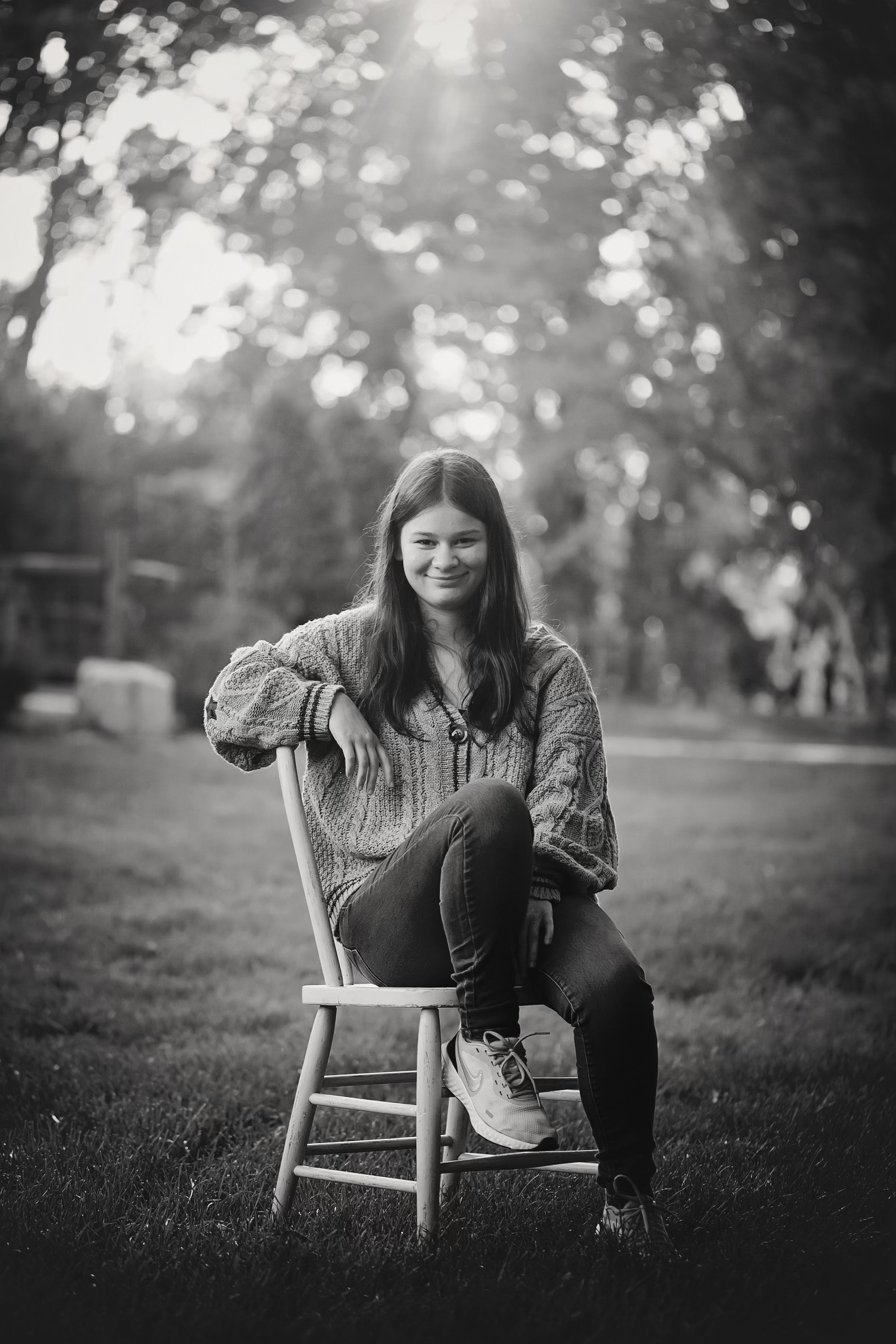 A picture of a girl with short, brown hair smiling back at the camera. She is wearing all black.